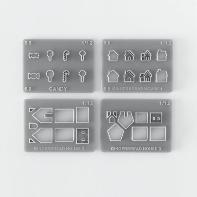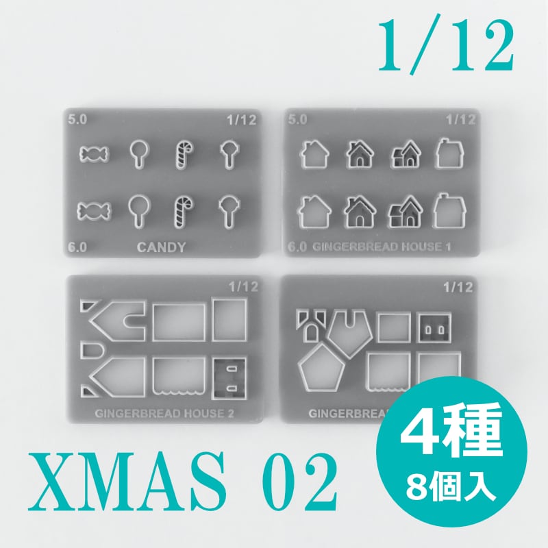 ミニチュア 1/12用 クレイカッター XMAS 02(キャンディ・ジンジャーブレッドハウス1-3)4種8個入